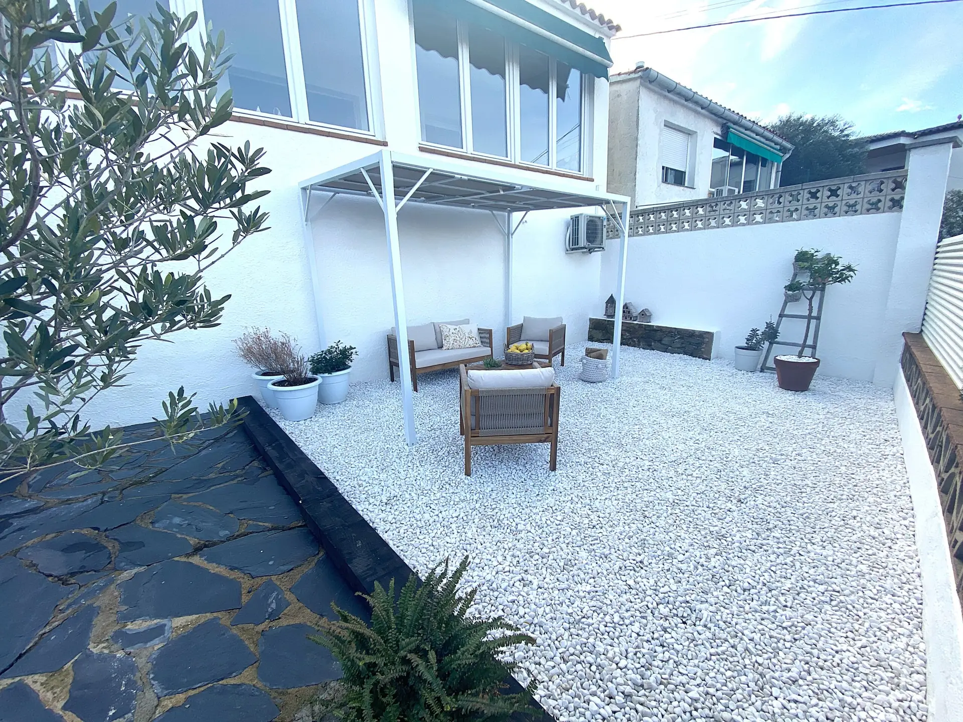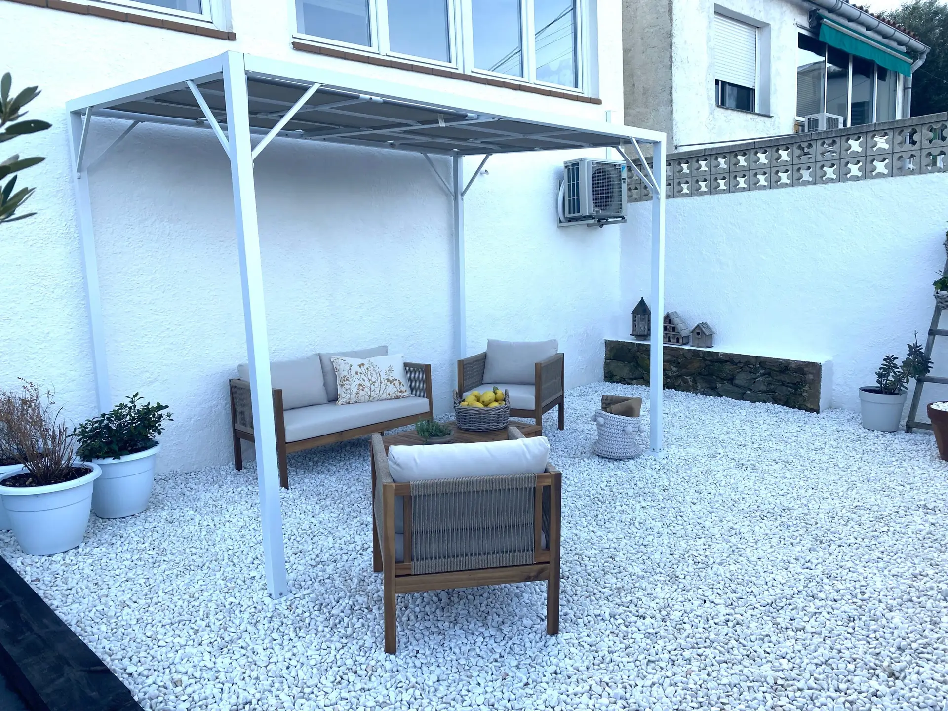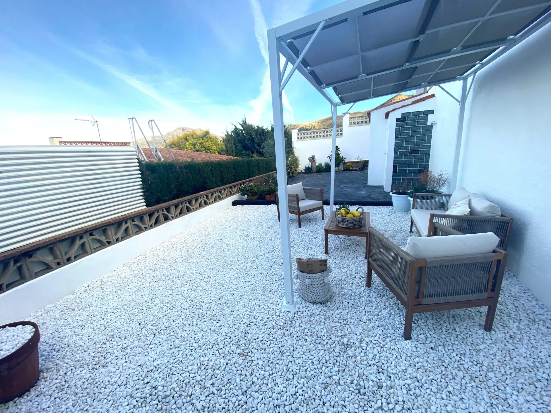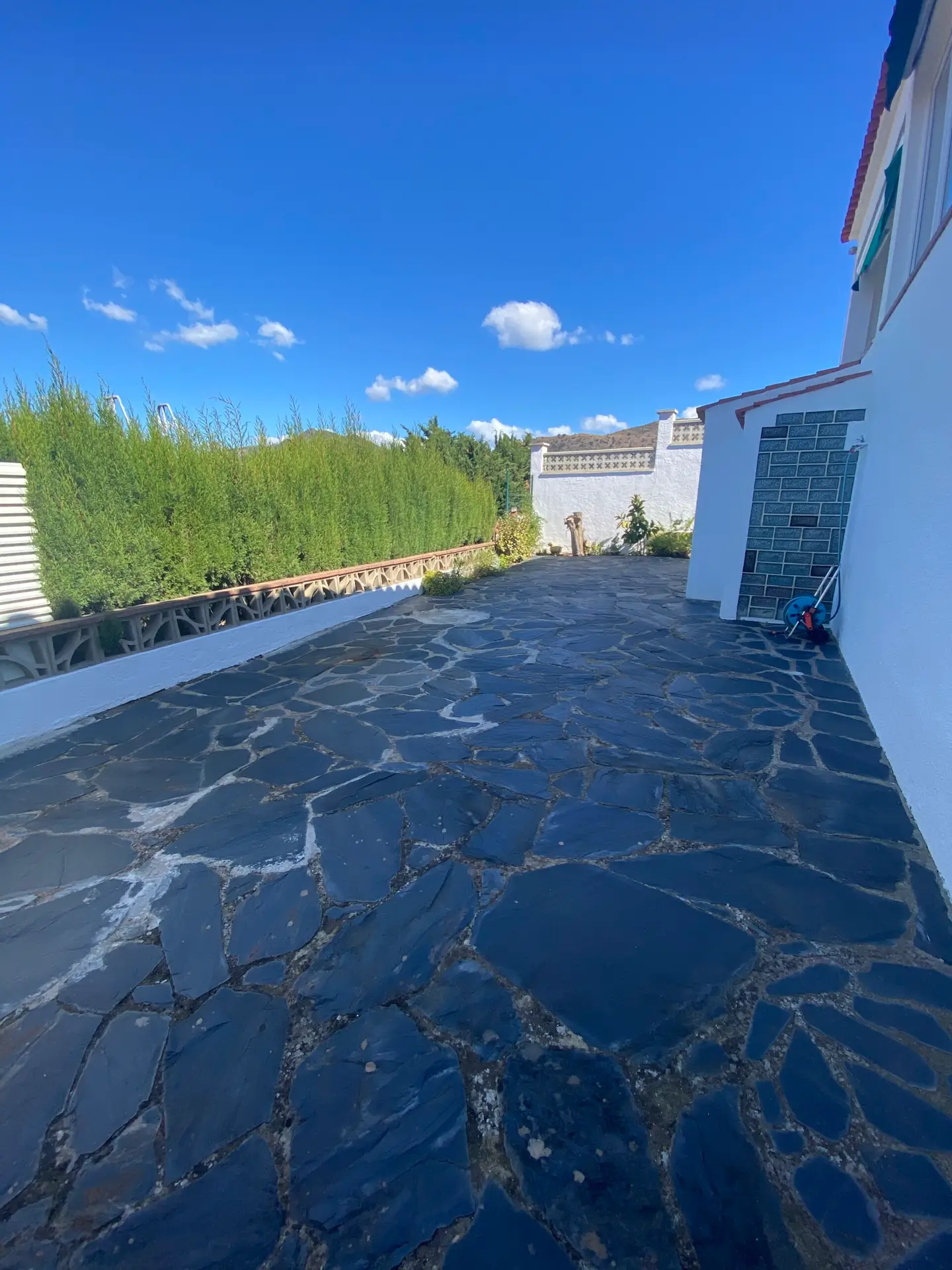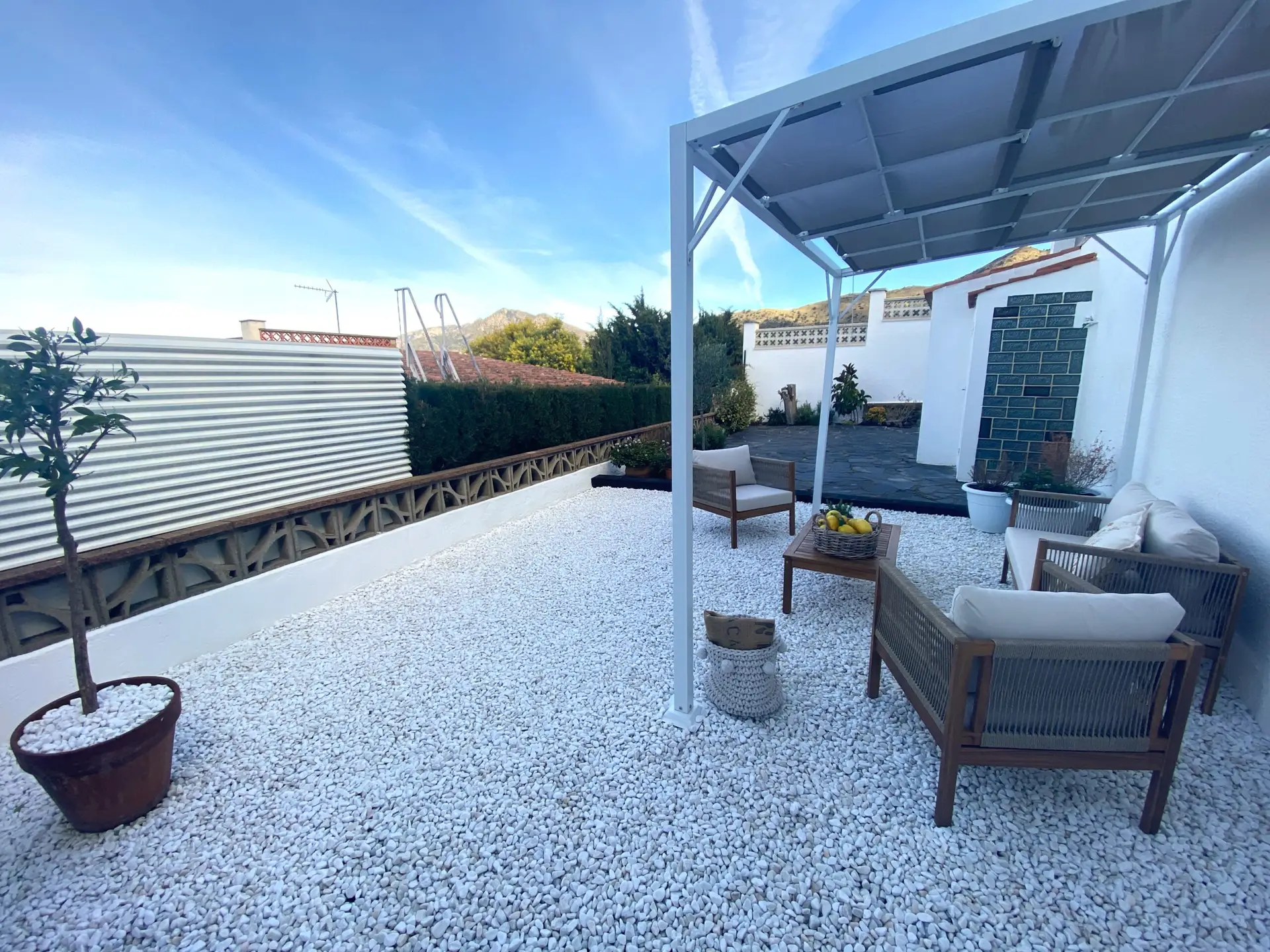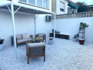 - Jardín mediterráneo: Parcela pavimentada con suelo de exterior, perfecta para crear tu piscina y disfrutar del aire libre.