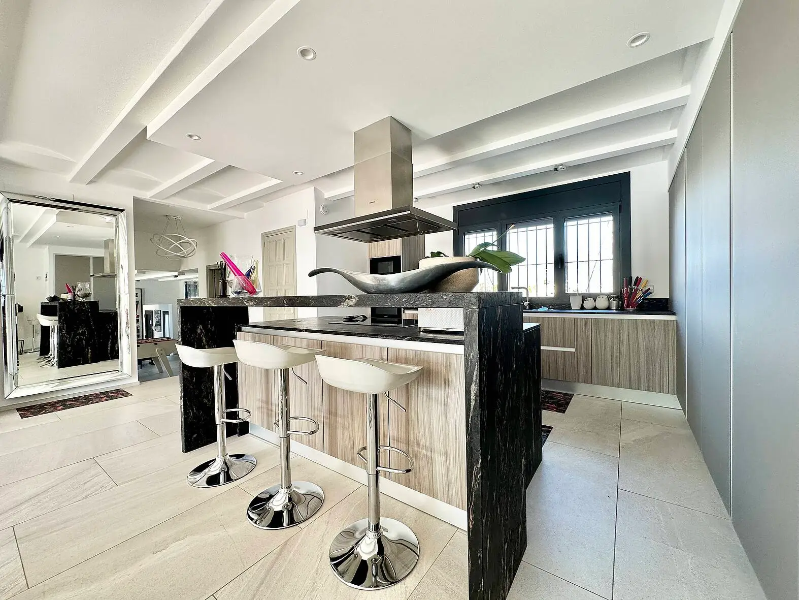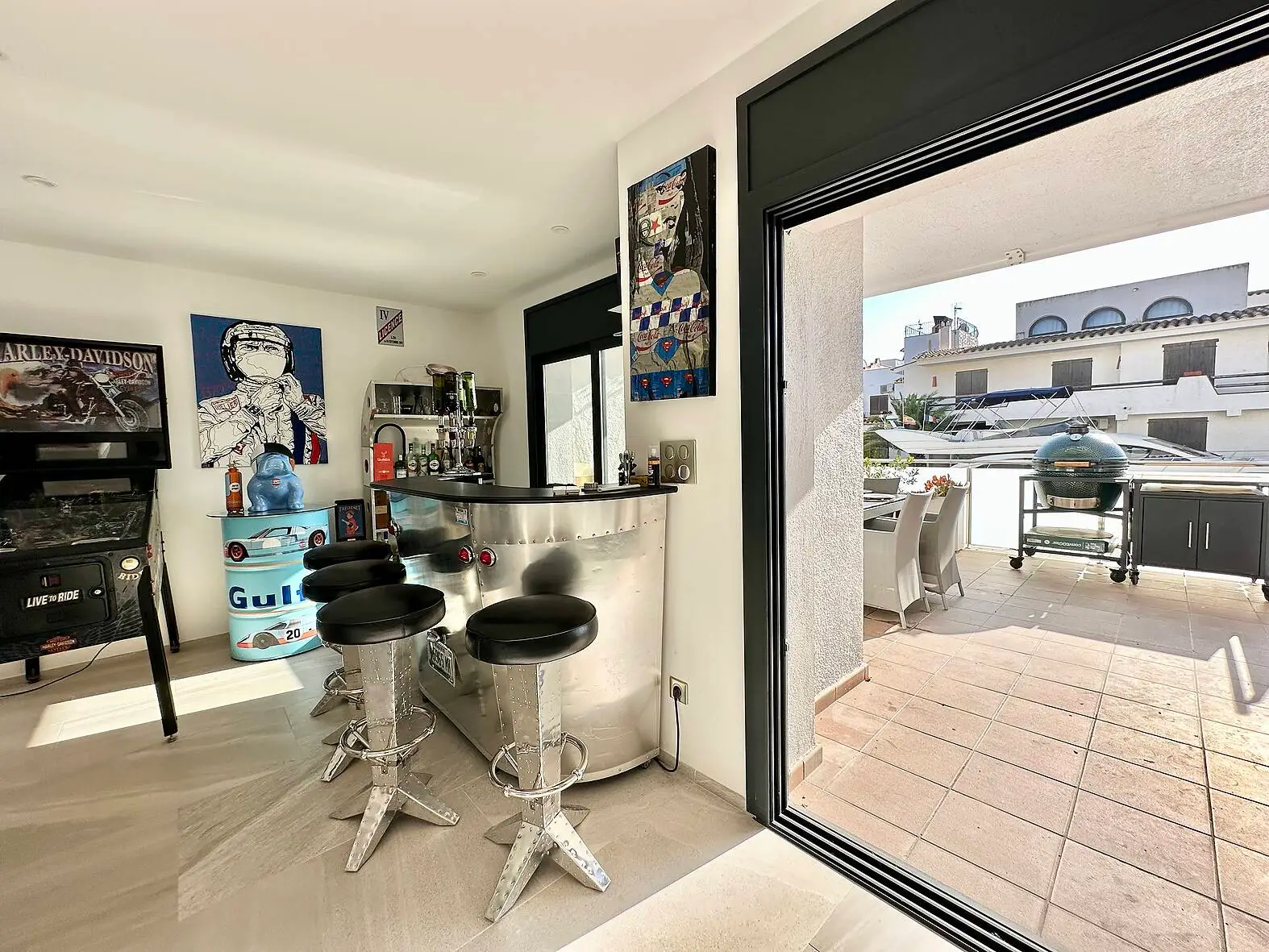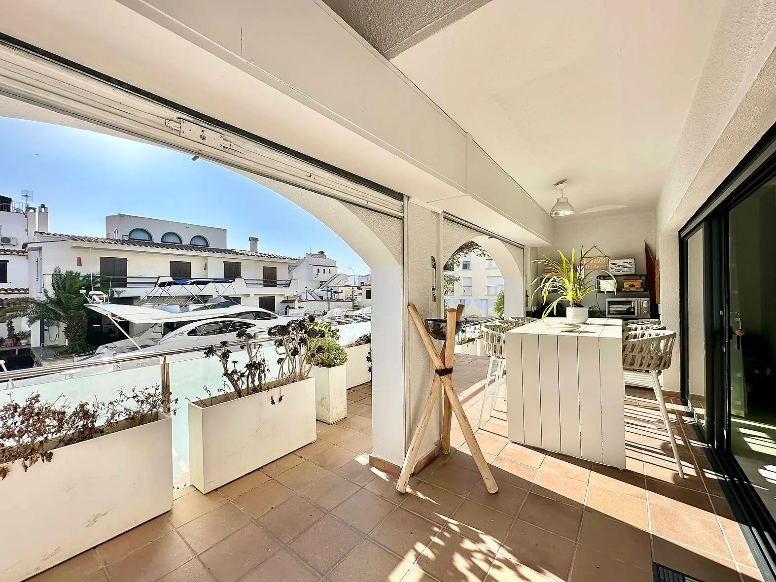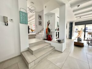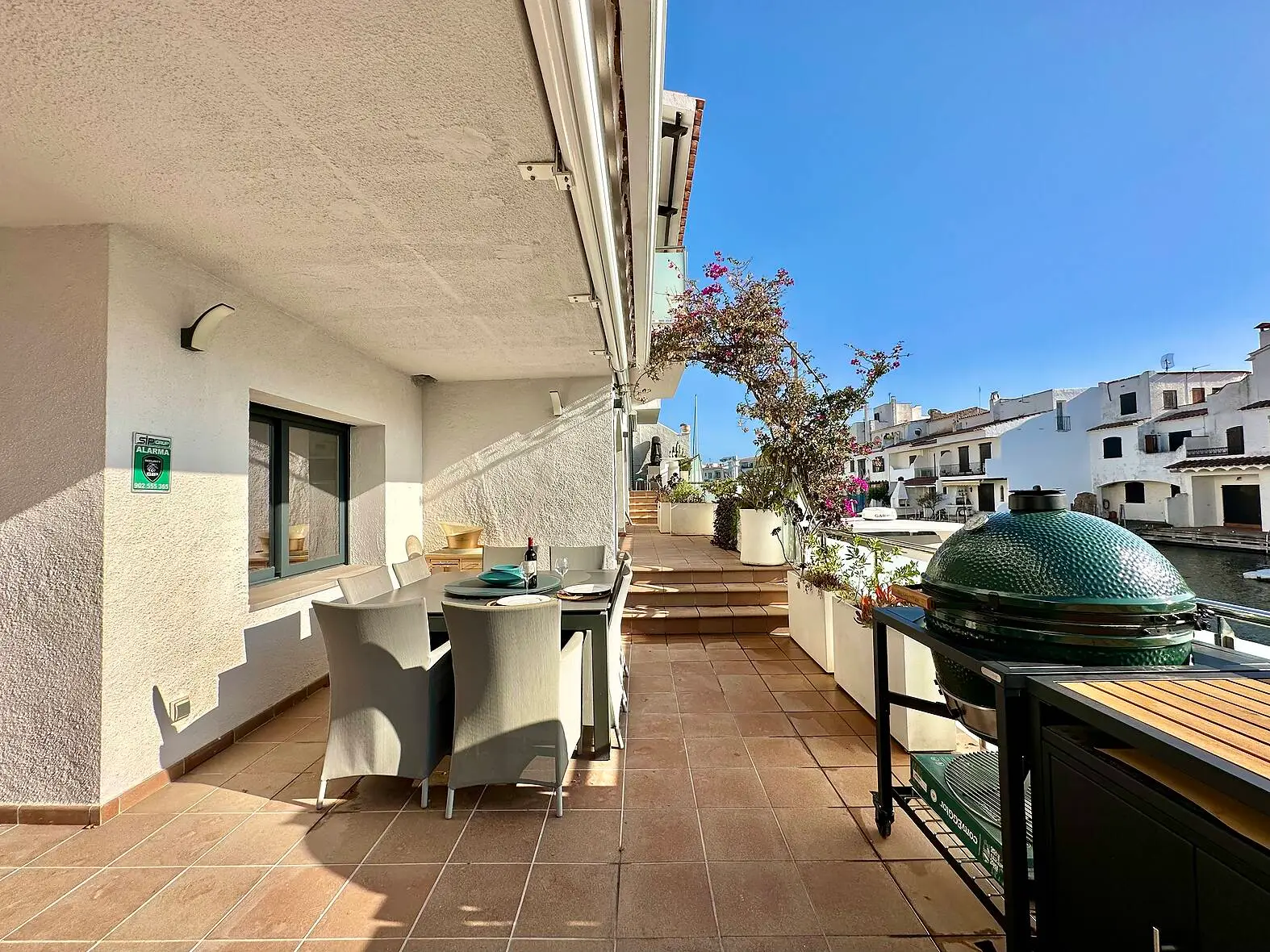 Descubre la elegancia y el confort en esta impresionante casa situada antes de los puentes en Empuriabrava, ofreciendo un estilo de vida privilegiado con vistas espectaculares al canal y un amarre privado de 20 metros. En la planta baja, encontrarás un encantador salón con acceso directo a la terraza, ideal para relajarse mientras disfrutas de las vistas al canal, además de una moderna cocina americana abierta al comedor, perfecta para comidas familiares y reuniones sociales. Para los momentos de entretenimiento, otra sala de estar o de juegos también con acceso a la terraza, crea un ambiente ideal para las reuniones con amigos. Un aseo de cortesía y un lavadero completan las comodidades de esta planta.