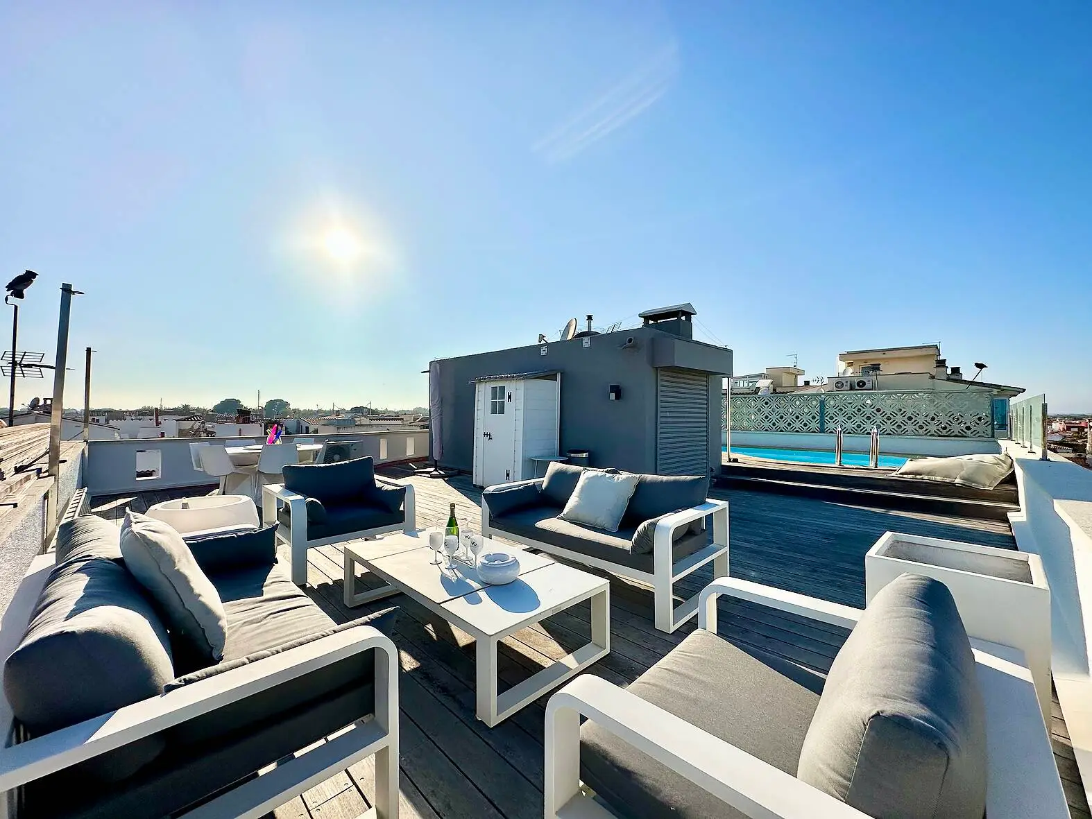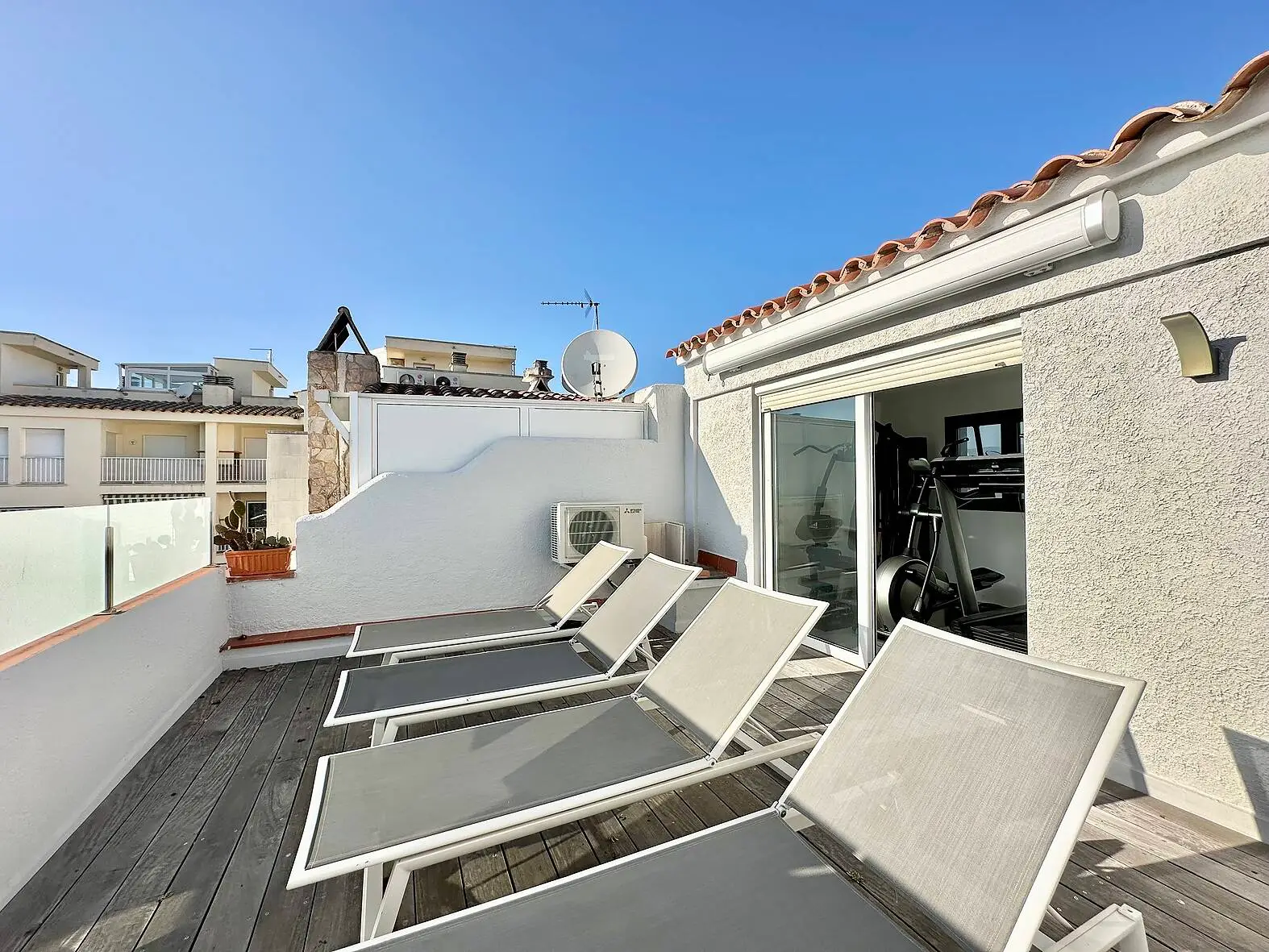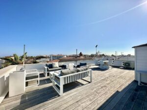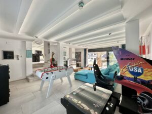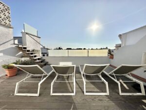 La azotea es un verdadero oasis de bienestar y diversión, con un gimnasio privado para mantenerte en forma sin salir de casa, una gran terraza con piscina para disfrutar del sol y relajarte, y una zona de cocina de verano ideal para barbacoas y comidas al aire libre. En el sótano, un amplio garaje con capacidad para aparcar dos vehículos proporciona seguridad y comodidad.