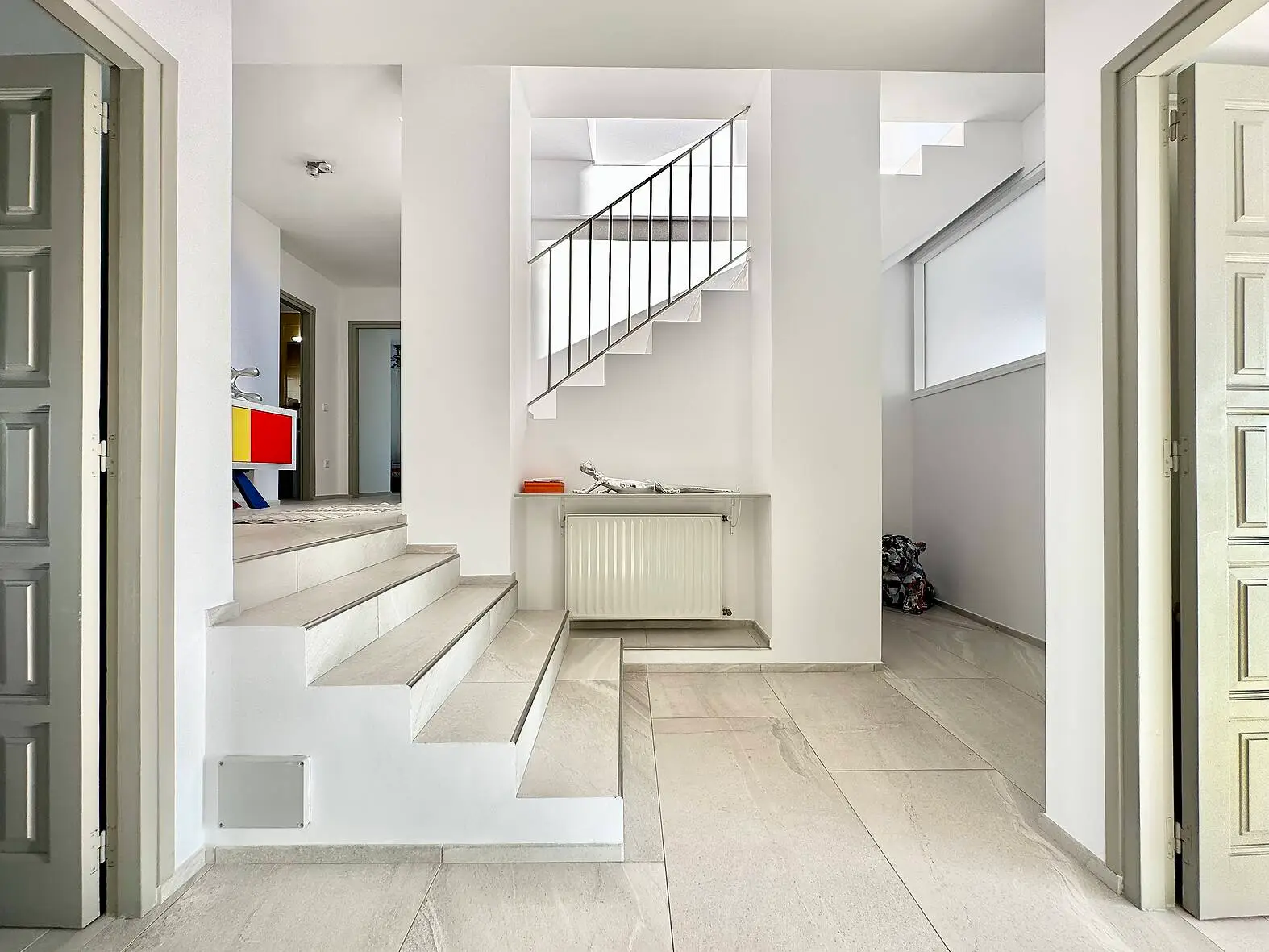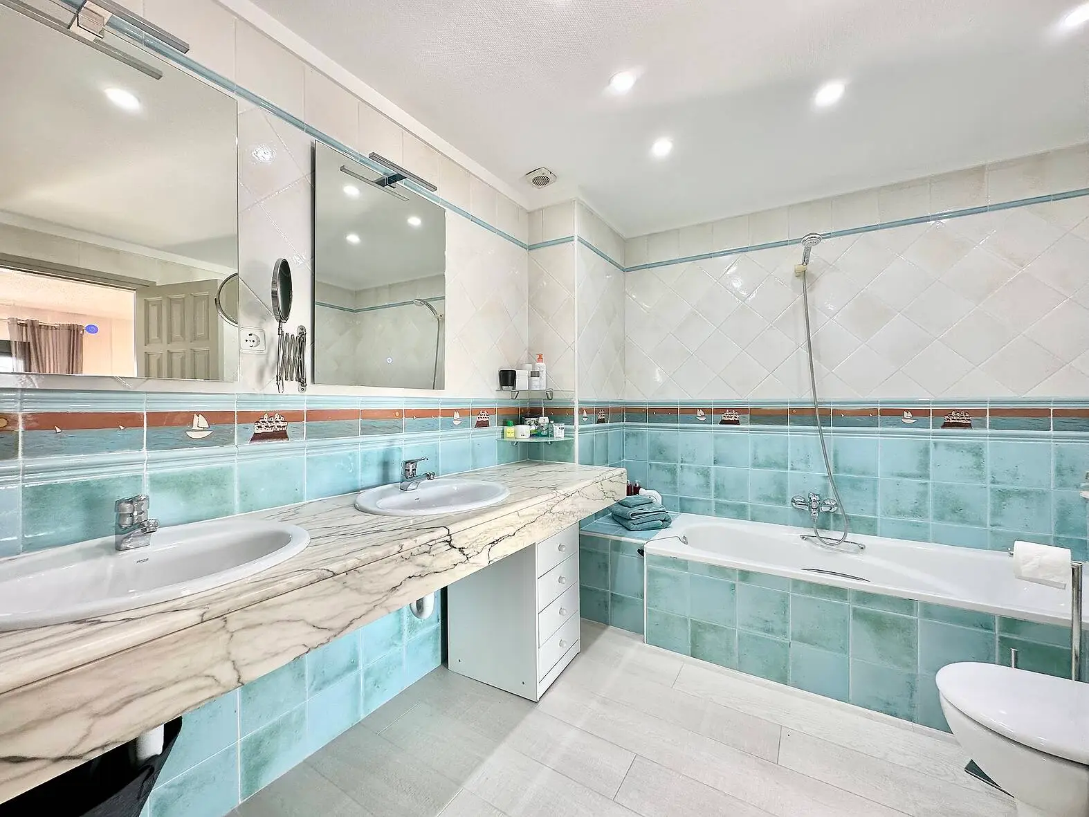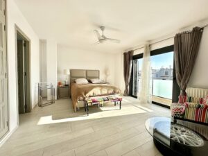 En la planta superior, la suite principal te espera con un espacioso baño privado que incluye una bañera y plato de ducha. Además, hay dos dormitorios en suite con vistas al puerto, proporcionando privacidad y confort a todos los miembros de la familia o invitados. También encontrarás dos dormitorios dobles, un cuarto baño completo adicional y un pequeño salón multifuncional que puede ser utilizado como un sexto dormitorio o una sala de estar adicional.