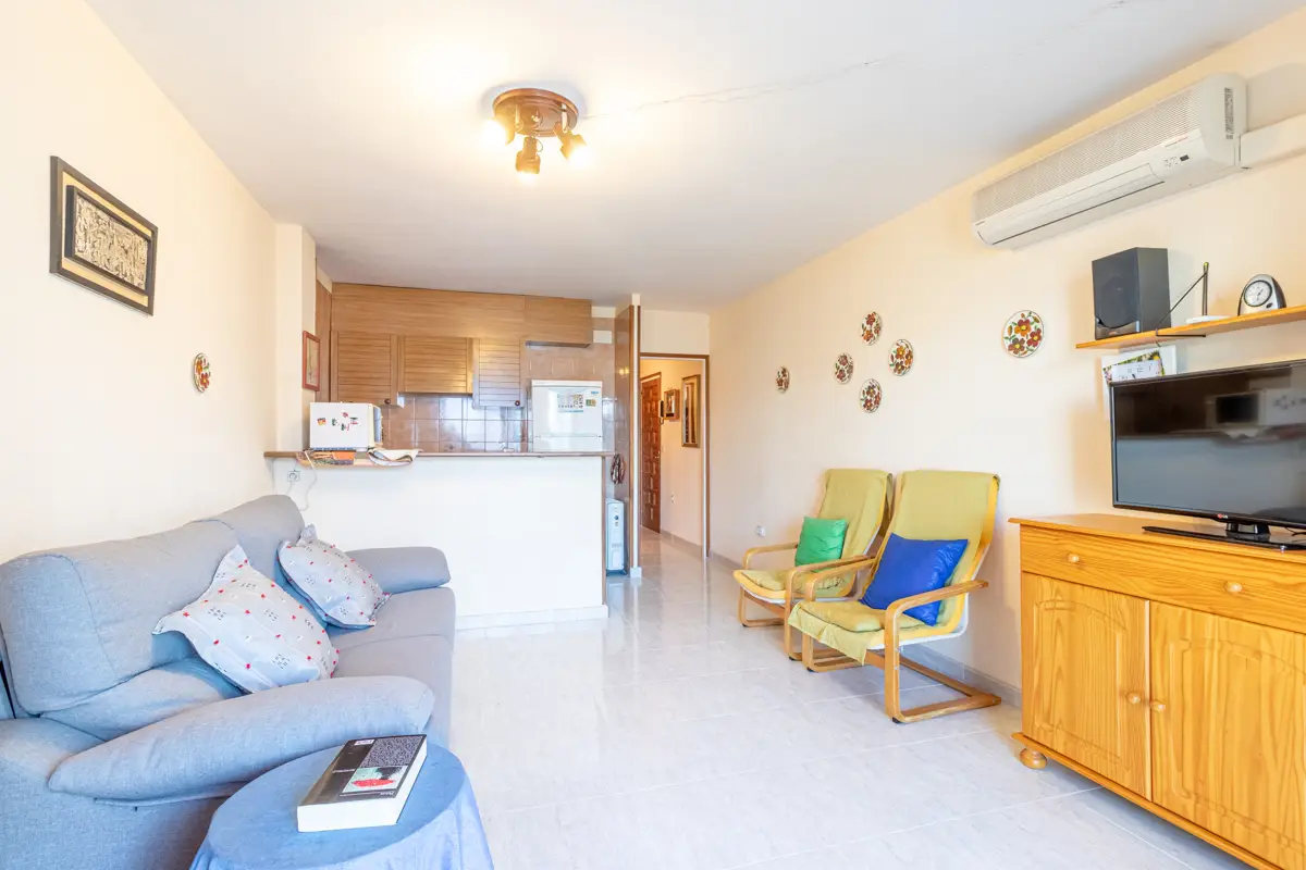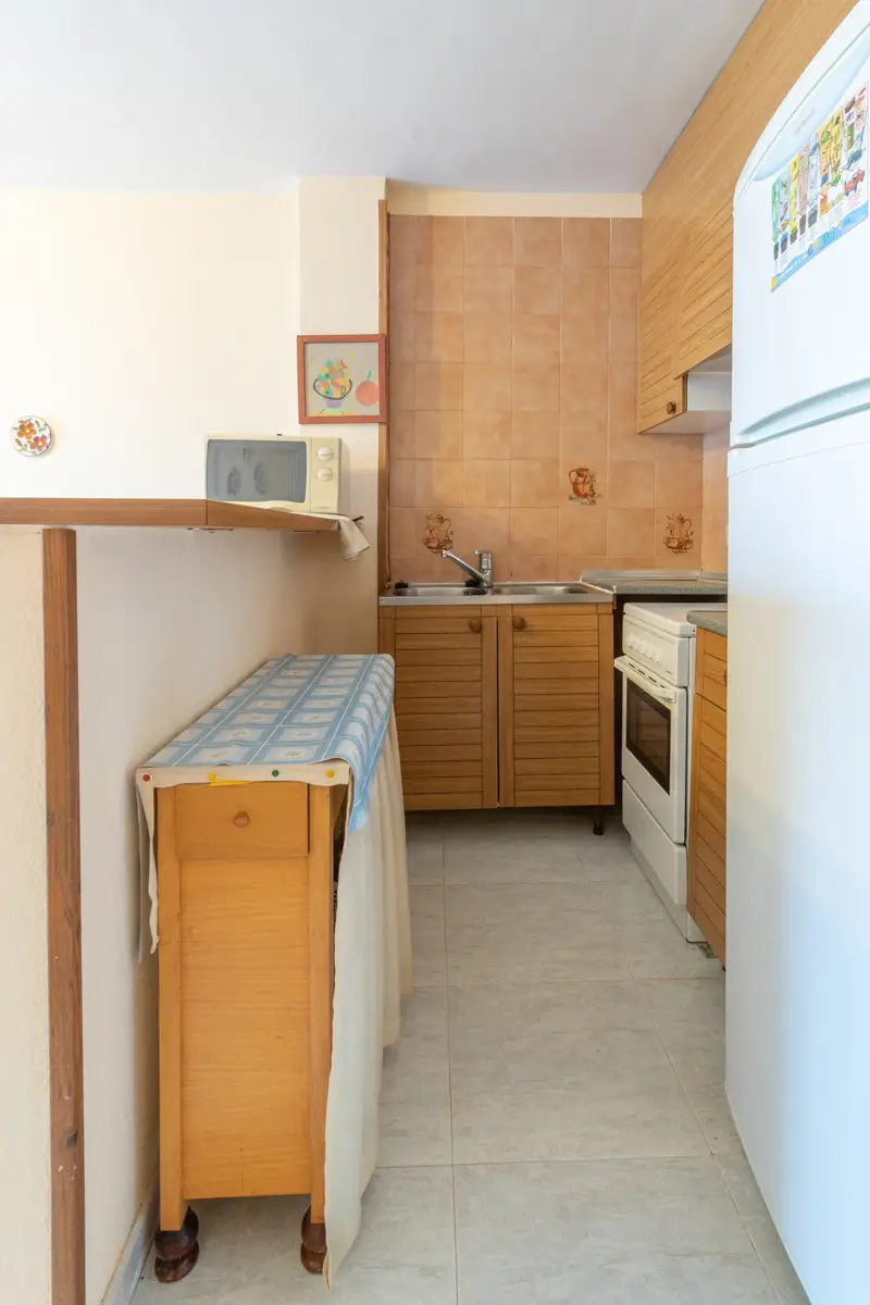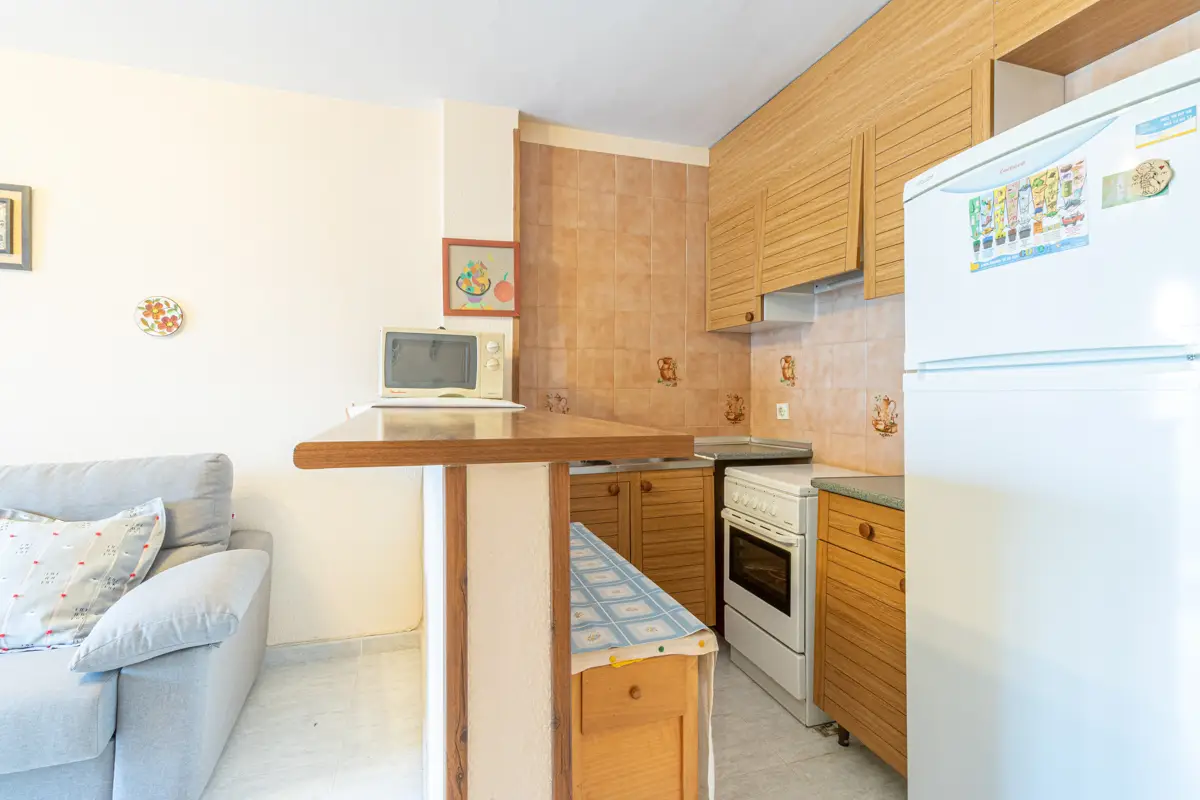 Este acogedor apartamento dispone de una moderna cocina americana integrada con el luminoso salón-comedor, una habitación doble y un baño completo. Este diseño crea un espacio abierto que fluye naturalmente y se complementa con una encantadora terraza, equipada con una puerta corredera que permite disfrutar de ella durante todo el año.
